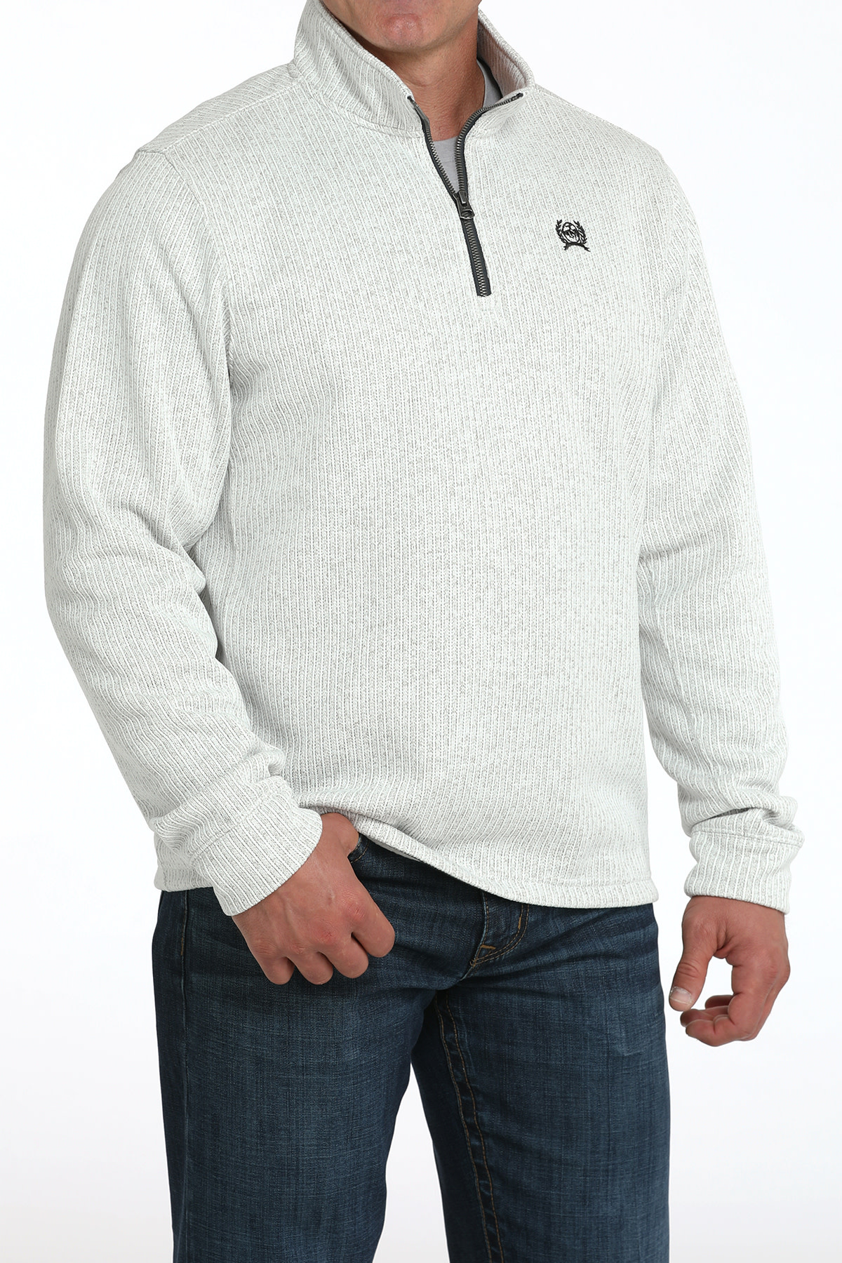 1/4 Zip Poly Knit Pullover Grey