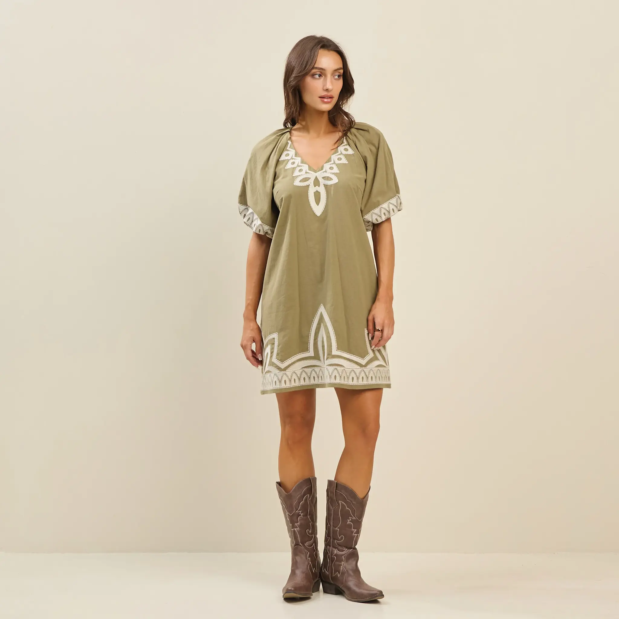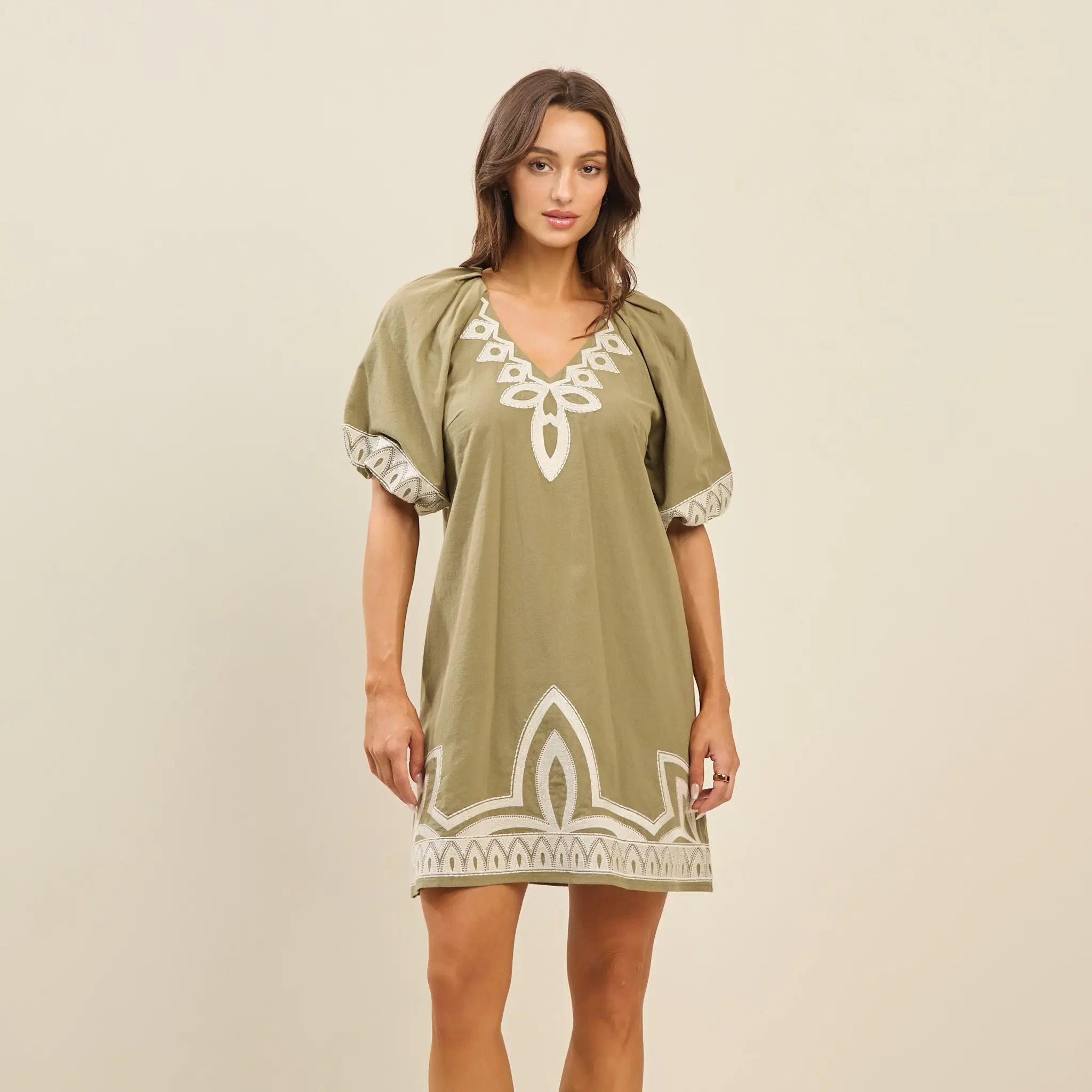 Embroidered Mini Dress Olive