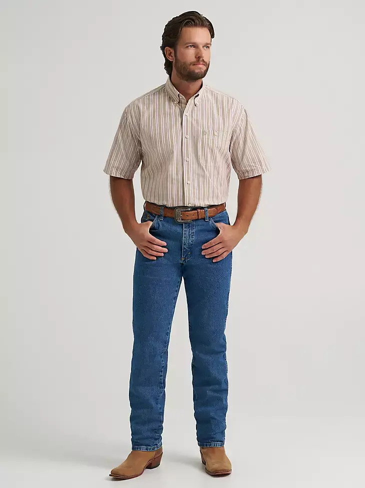George Strait One Pocket Button Down Sand Stripes
