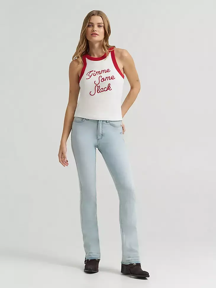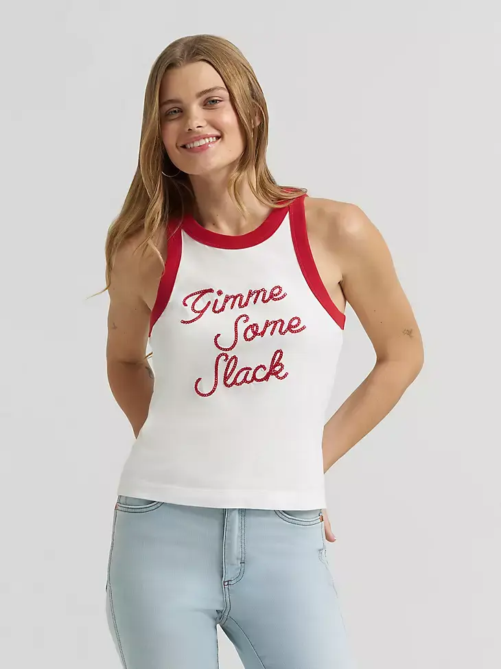 • Built for movement and sun-soaked moments, the Lainey Wilson x Wrangler® Gimme Some Slack Tank is ready to roam. It’s cut with a slim, slightly cropped silhouette that’s perfect for soaking up the sun.