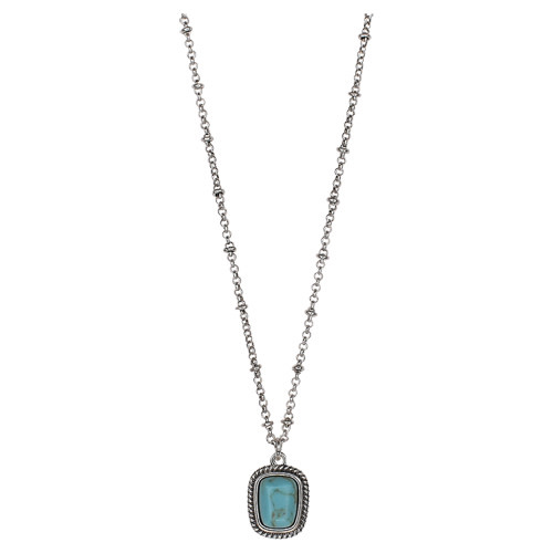 Square Faux Turquoise Charm with Roper Accent Zinc Alloy W/Silver OX 16" Saturn Chain With 2.5" Extension Chain