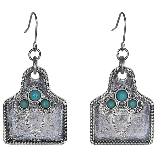 Steer Cow Tag w Faux Turquoise Earrings
